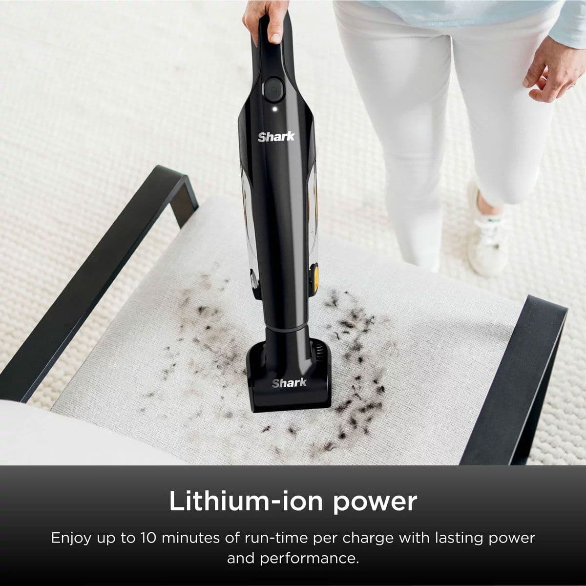 Shark CH950UKT 10.8V cordless handheld vacuum with motorised pet tool, 10-minute runtime, 0.45L capacity, washable filter and lightweight design—ideal for quick pet hair and everyday clean-ups at home or in the car.